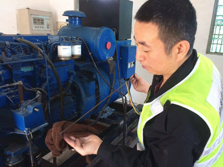 圖為工作人員在檢查發(fā)電機(jī)機(jī)油