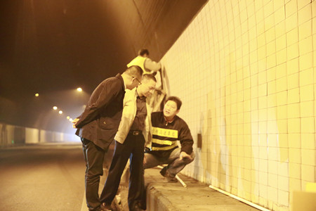 圖為集團副董事長、總經理張建平在黃土嶺隧道整治施工現場檢查 他還到黃土嶺隧道整治施工現場,檢查機電更換、通風系統維護等工作。檢查中,令張建平感到欣慰的是,整體狀況良好,隧道整治和攻堅養護多個工作面同時推進,工作開展秩序良好。