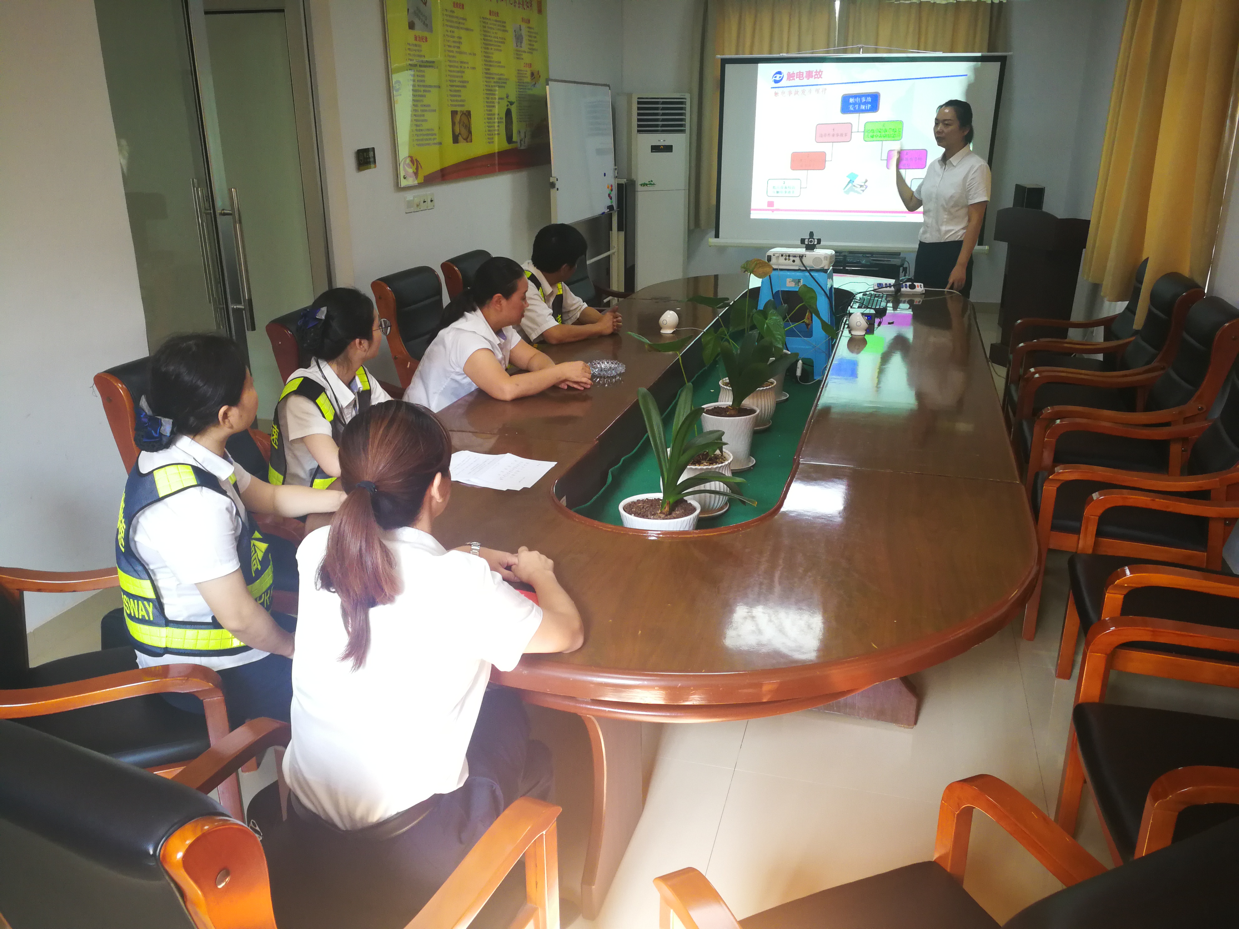 圖為培訓(xùn)現(xiàn)場(chǎng) 夏季是事故多發(fā)季,高溫天氣多變,增加了環(huán)境的不確定因素,給生產(chǎn)帶來(lái)了一定的安全隱患。本次臨海南收費(fèi)所主要從夏季多發(fā)的觸電、雷電、中毒和中暑等方面來(lái)講解安全生產(chǎn)。