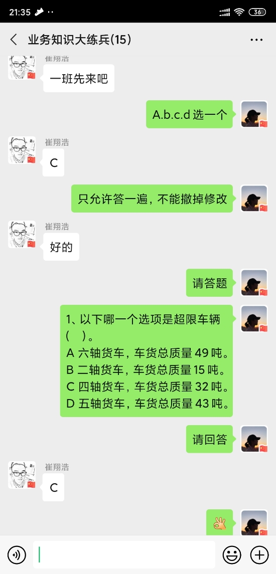 圖為比賽答題現場 復賽開始前,參加人員由所務人員組建了群,雖然是以網絡方式比賽,但比賽熱情高漲,你追我趕,分數不相上下,其中第一小組以突出表現最終奪冠。收費一班崔翔浩、何丹燕,收費三班任青青分別獲得個人第一、二、三名。 這種“比一比,練一練”的形式,營造了良好的學習氛圍,它有助于更全面地提升員工業(yè)務水平和綜合素質,更進一步激發(fā)全體員工深入學習新業(yè)務新知識的熱情。 楊雅芬