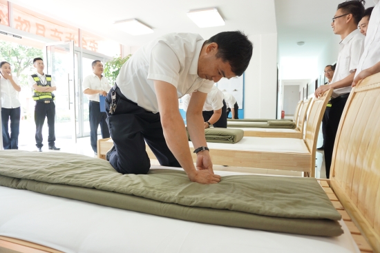 圖為比賽現(xiàn)場 活動(dòng)現(xiàn)場,裁判宣布比賽規(guī)則及打分標(biāo)準(zhǔn):評分從被子整體形狀、平整度、棱角明顯、折疊時(shí)間等方面判斷,規(guī)定在5分鐘內(nèi)完成,共設(shè)置一、二、三等獎(jiǎng)三個(gè)獎(jiǎng)項(xiàng)。內(nèi)務(wù)半軍事化在該所已是常態(tài),參賽選手們很快進(jìn)入狀態(tài),從鋪到疊再到整,駕輕就熟,均能在規(guī)定時(shí)間內(nèi)整出“豆腐塊”。評委現(xiàn)場進(jìn)行點(diǎn)評和打分。經(jīng)過競逐,最后副站收費(fèi)四班何翊平奪得一等獎(jiǎng)。比賽分四輪進(jìn)行,且全程用時(shí)不到1個(gè)小時(shí)。