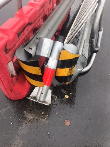 圖為被撞壞的設施 當天10點10分, 該所出口外廣場,一輛5類大貨車趁著雨勢較大,竟私自將道路中間水碼移開,然后違規掉頭撞壞隔離帶及外部鐵質柵欄后逃逸。因當時雨勢大且該車車速較快,收費二班當班安全員林葉輝在追逐示警無效后立刻報告班長陳軍,通過調取監控錄像后查到該車車牌,并迅速與指揮中心取得聯系。經指揮中心查詢,該車為某公司名下運輸車輛,隨即陳軍與該公司取得聯系。 經了解,該車駕駛員因雨天行駛速度慢,怕耽誤去院橋下貨,一時沖動違規掉頭想節省時間,在撞到隔離帶后更加慌張逃逸。在和該車司機耐心溝通后,司機表示下完貨后會立刻前來處理。 經過近一個小時的等待,這位司機終于回到現場,公司理賠人員及安保人員與司機一同確認隔離帶損壞情況,確認無誤后該車司機繳納了賠償款后駕車離開。 在此筆者提醒各位司機朋友,切勿違規掉頭以免造成不必要的危險。 洪燈杰