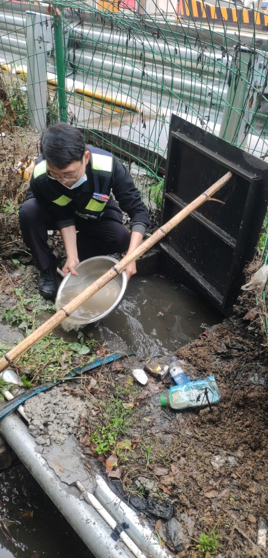 找出原因后,鄭星趕忙跑到所里取來一個水盆和一根木桿子。他用木桿支起排水坑上的蓋板,將坑里的積水一盆一盆地舀到旁邊的排水溝里。引導(dǎo)完車輛的林華平也過來協(xié)助鄭星。雖然此時外面下著雨,但他們?nèi)粵]顧上,只盼著舀水這個措施能夠有效,11號車道能夠早點(diǎn)恢復(fù)使用,進(jìn)口秩序能夠早點(diǎn)恢復(fù)正常。 最后在鄭星和林華平的冒雨搶修下,排水坑里的水位總算有所下降,11號車道在關(guān)閉二十多分鐘后終于恢復(fù)使用,進(jìn)口車輛也恢復(fù)暢通。 因地磅傳感器長期被雨水浸泡,可能還存在一些潛在問題。再者,排水坑里的水位雖有所下降,單憑人力實(shí)在無法在短時間內(nèi)排掉剩余積水。考慮到這些問題,班長在搶修過后又將情況匯報給了維養(yǎng)中心,維修人員后序針對地磅問題進(jìn)一步展開排查和維修工作。 趙育辰