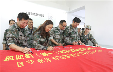 圖為集團領導在活動橫幅上簽字留念