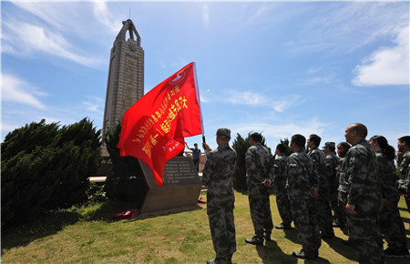 圖為黨員參觀大陳島墾荒紀念館 “讓我們重溫入黨誓詞,牢記黨員使命。”當鮮紅的黨旗在墾荒紀念碑下鋪開的時候,大家的思緒拉回現實。激情燃燒的歲月是歷史,從歷史中汲取力量,不忘初心,弘揚和傳承艱苦創業精神,鍥而不舍地克服集團發展中的難關難題,才是此行活動真正的意義所在。“我志愿加入中國共產黨......”面向黨旗,大家齊齊舉起右手,跟隨集團黨委委員陳保衛一起大聲宣誓,墾荒碑下回聲嘹亮,一句句錚錚誓言體現出黨員干部無比堅定的信念。