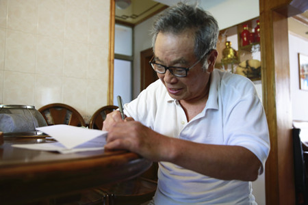 圖為老干部周瀝泉簽訂股權轉讓手續