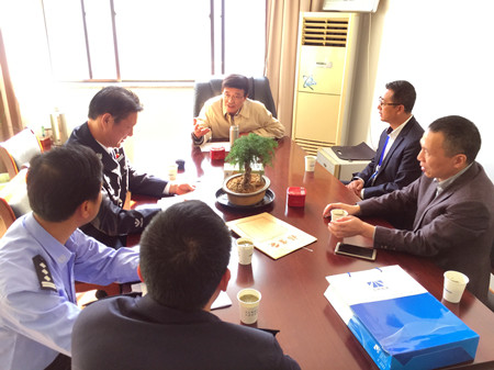 圖為市國資委主任徐豪和集團總經(jīng)理張建平一起走訪市國稅局股東單位