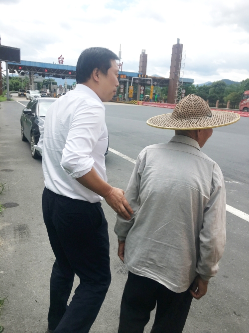 7月19日下午1點10分許,工程部機電設備維養中心在臺州南收費所完成維養任務返回中心途中,發現寧向距離該所1公里左右的高速路上有一老人戴著涼帽正在應急車道內行走。此時路面車輛速度非常快,情況十分危險。見此情況后,中心隊員立即下車詢問情況。經了解,該名老人已有70多歲,家住院橋東鑒村,準備去往橫涇后岸村親戚家,后因迷路、不識字誤上高速,直到被中心隊員發現。