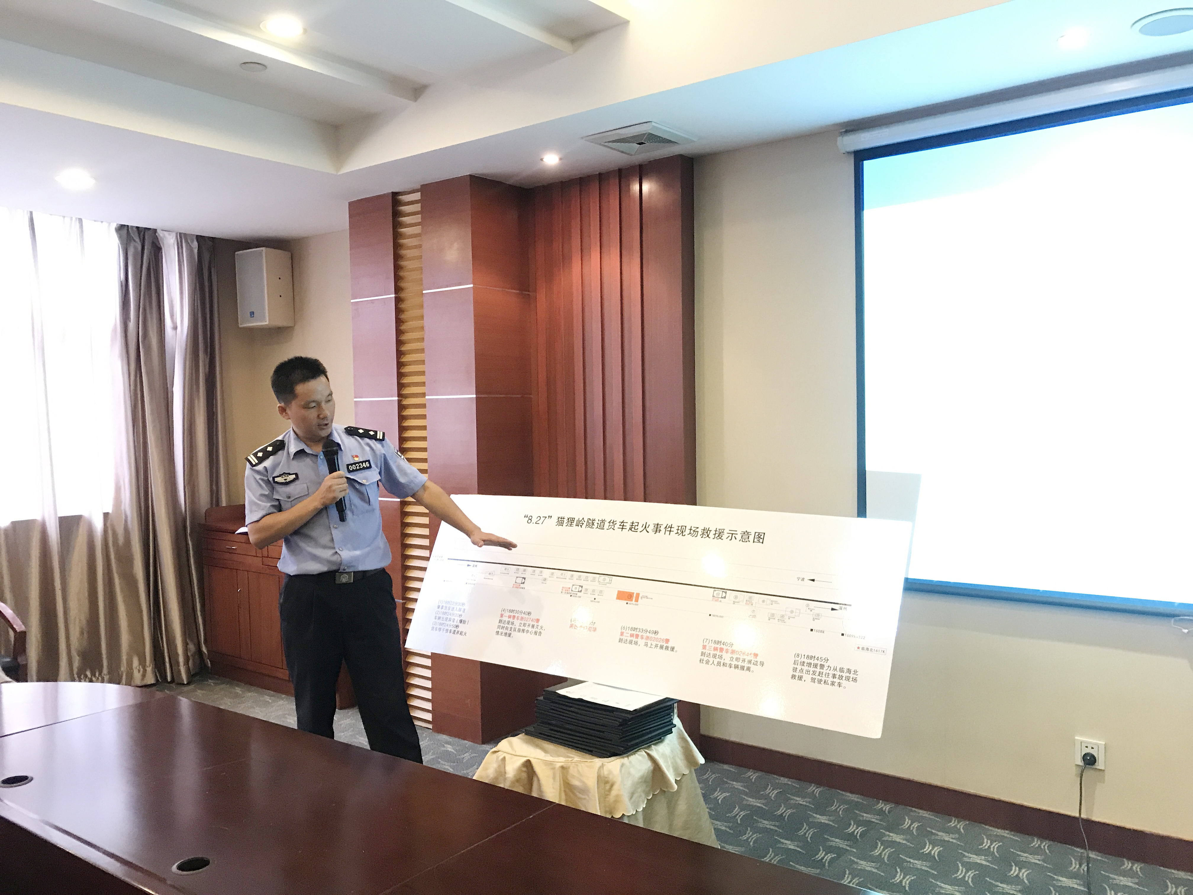 圖為培訓現場 徐向道從險情發生和救援兩個階段、善后處置及事件勘查四個要點出發,回顧了“8.27”貓貍嶺隧道特大起火事件,并例舉2010年1月6日貨車起火,寶馬陪葬,甬臺溫高速大溪嶺隧道關閉7小時,2016年5月16日臨海南收費站出口“大貨車高速路上起火 司機駕車沖卡化險為夷”等事件,指出隧道內起火事件時有發生,形勢比較嚴峻,大溪嶺隧道、黃土嶺隧道都曾經歷過火災事件的考驗,隧道火災事件防范及駕駛人火災事件處置能力提升迫在眉睫,管理部門措施落實不到位要被問責、追責。