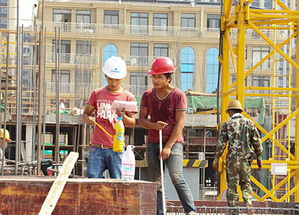 一周以來,我市出現(xiàn)持續(xù)高溫天氣,熱浪侵襲。集團(tuán)下屬子公司仁和房產(chǎn)文鼎苑樓盤施工場(chǎng)地上,白天溫度高達(dá)38℃,地表溫度達(dá)60多℃,頭頂明晃晃的太陽,腳踩炙熱的鋼板和腳手架,兩百多名工人正在忙碌作業(yè)中。他們頭戴安全帽,隨身攜帶一個(gè)大容量水壺,脖子上再掛一條濕毛巾,這是他們當(dāng)中大部分人的標(biāo)準(zhǔn)解暑“裝備”。